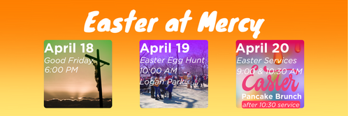 Join Mercy, Mill City Church, and Iglesia Espíritu Santo for our annual Easter Egg Hunt at Logan Park! There will be lots of games, crafts, and festival-style fun in addition to the Easter Egg Hunt.